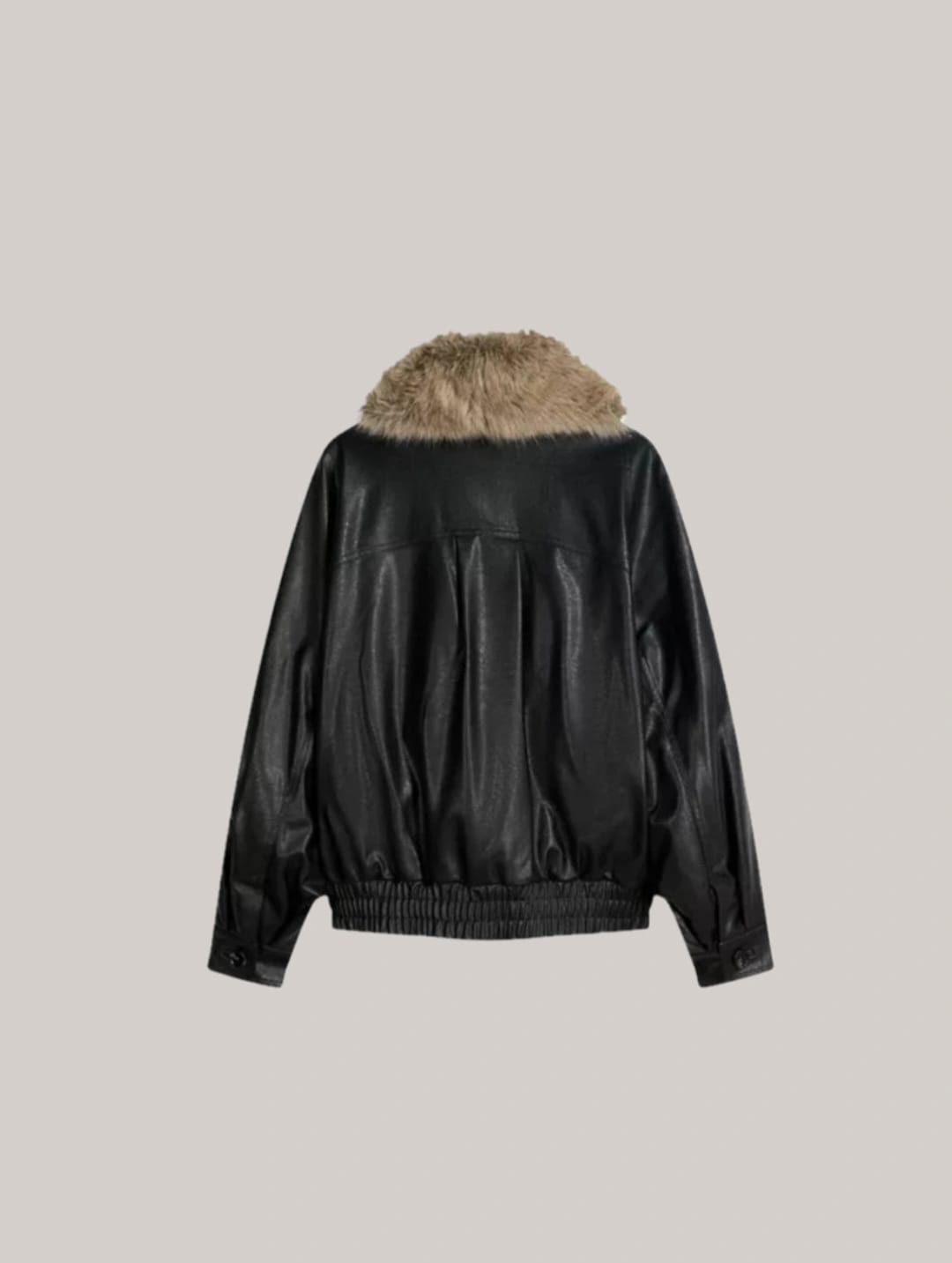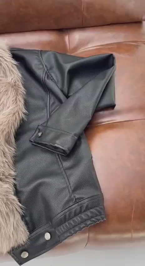 Luxury faux leather jacket with a plush faux fur collar for a bold, statement-making look. 🖤